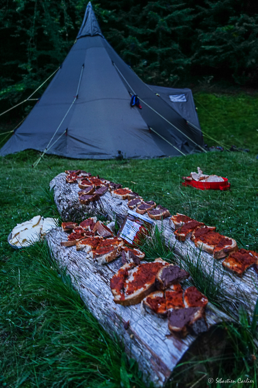 J1 / La proposition se déroule dans un premier temps dans une grange aménagée de montagne, « à la table », pour échanger – partager les fondamentaux du bivouac, de l’itinérance, son aspect règlementaire, comprendre, avoir les outils d’analyse des paysages institutionnels que l’on traverse. Temps d’échange sur la diversité du matériel avec un jeu des scénarios sur l’usage / la situation.