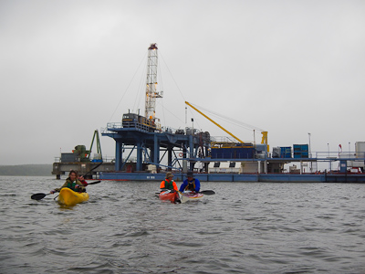 Et puis en fin d’après midi, nous avons traversé les ambiances d’Ecosse, de Mer du Nord, lorsqu’on a mis le cap à 142°, dans la pointe du bateau. Il restait à imaginer Gastes et son petit port, ... mais avant, il a fallu traverser, passer à côté de ces puits de pétrole, .... ambiance !