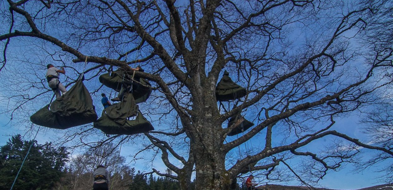 Retour en image d’un bivouac insolite d’Itinéraires Partagés avec Manu Obry comme guide de Grimpe Arbres & Sébastien Carlier pour l’accompagnement montagne.