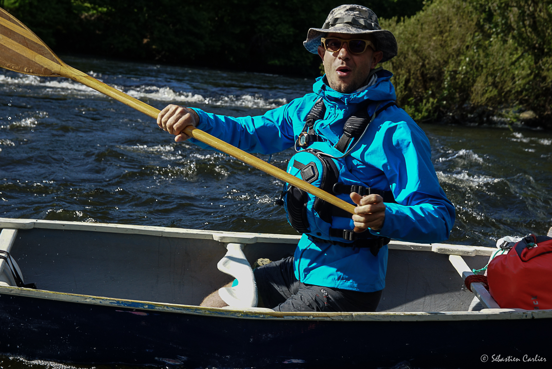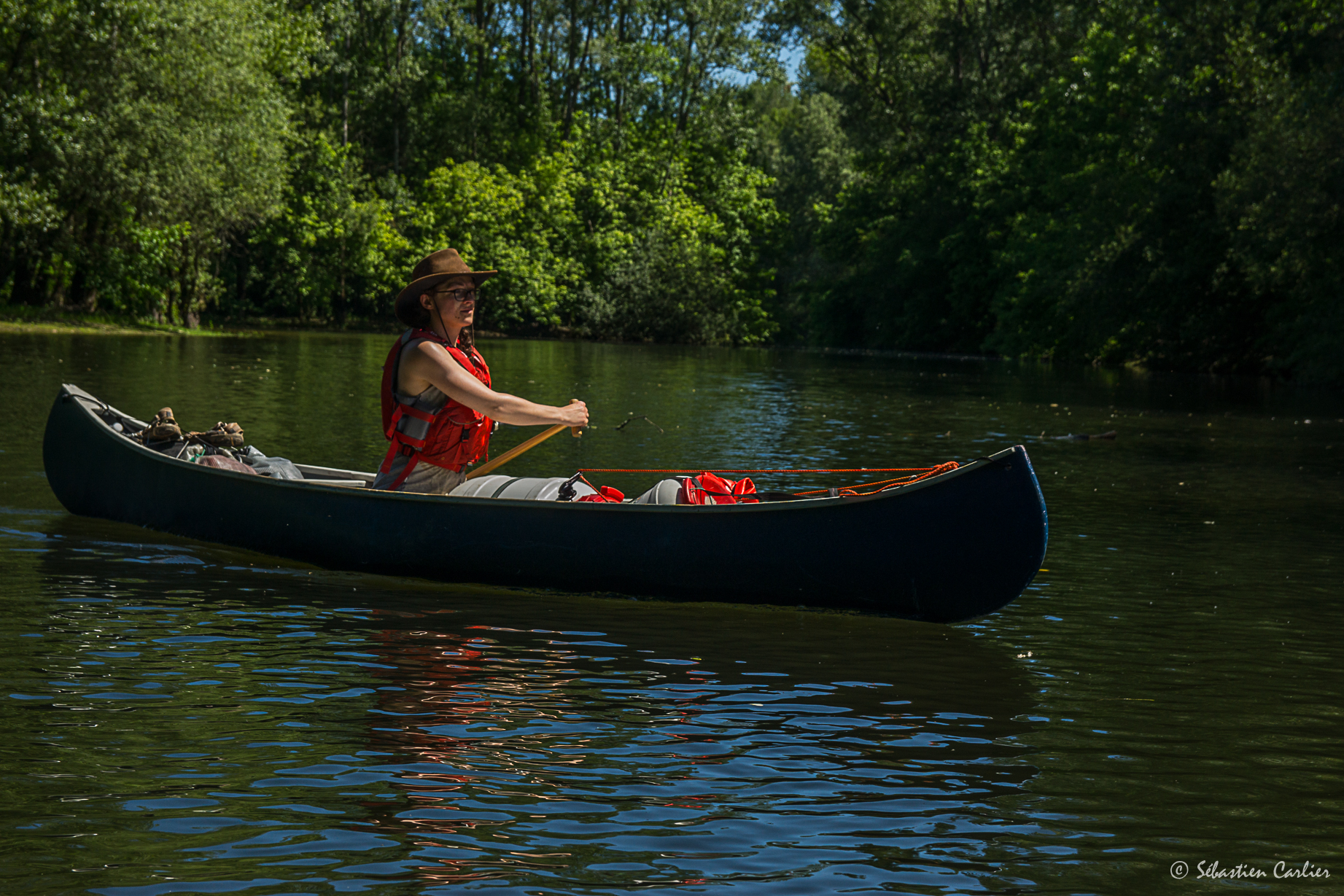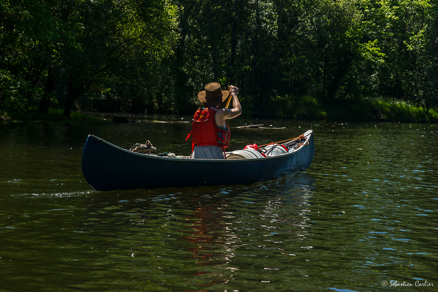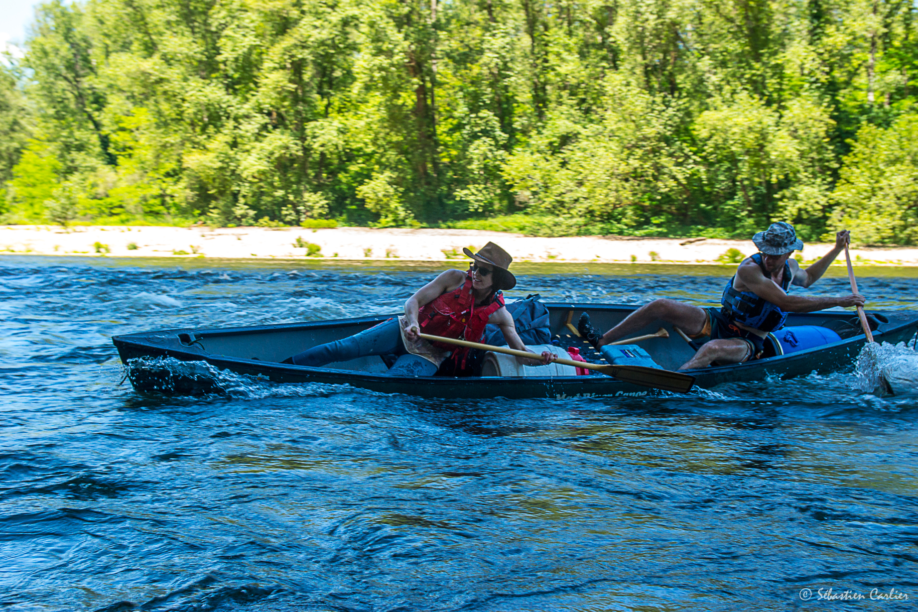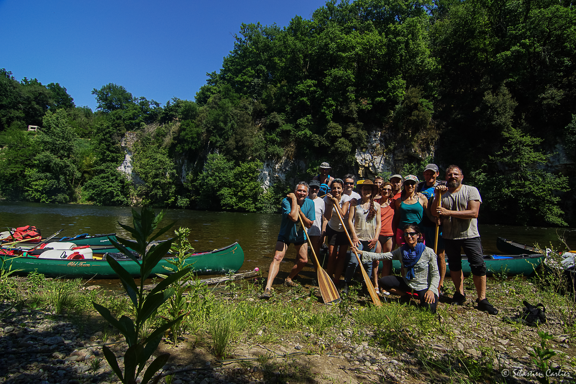 Une belle flotte de canoes, de Nova Craft, des 15-16-17, venant de chez Passion Nature. De très beaux bateaux qui savent conserver leur glisse, même avec la charge d’une itinérance. Le top pour ce genre de descente !