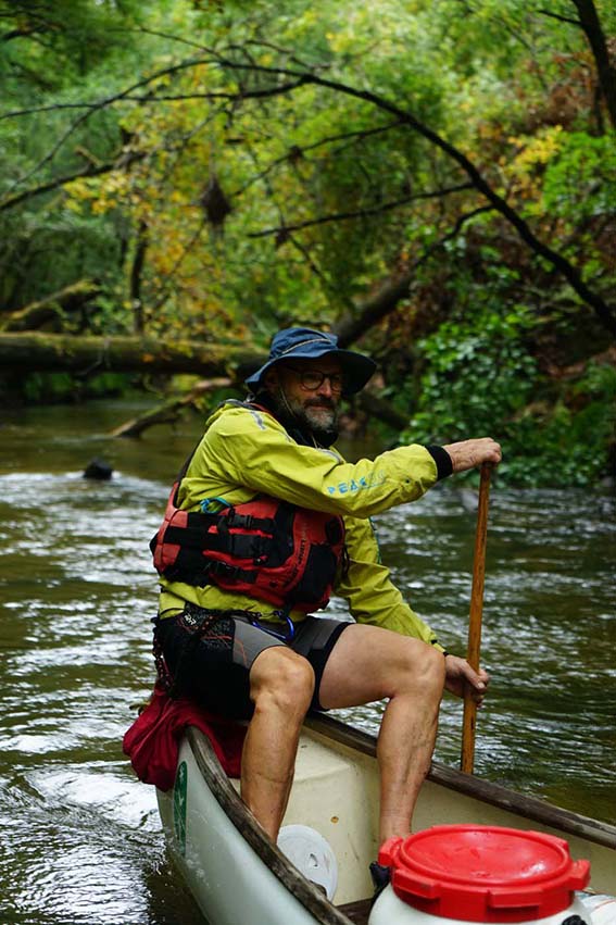 Aussi agile à la pagaie qu’avec une caisse à outils, il sait s’adapter et improviser toute surprise technique lors du bivouac. C’est avant tout un curieux de nature qui saura nous faire partager sa passion sur d’autres rivières que la Leyre !