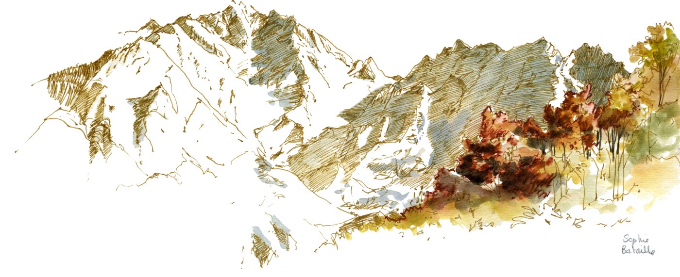 Stage randonnée/aquarelle où nous sommes hébergés dans une gîte en plein coeur du village de Lescun. Nous serons ainsi au plus prés des panoramas à peindre. Dans nos carnets de voyage, nous explorerons les techniques d’aquarelle de montagne parés de leurs belles couleurs d’automne. D’autres sujets à peindre croisés sur les chemins pourront être croqué (village, forêt, arbres, brebis). Ce stage est co-animé par Sophie Bataille, aquarelliste – carnetiste et Sébastien Carlier, accompagnateur montagne.
