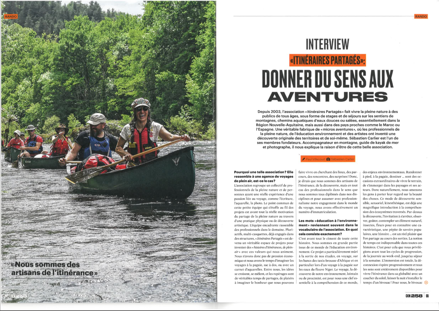 PRESENTATION D’ITINERAIRES PARTAGES DANS CANOE KAYAK MAG