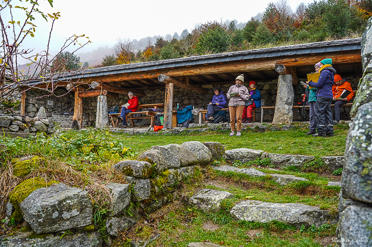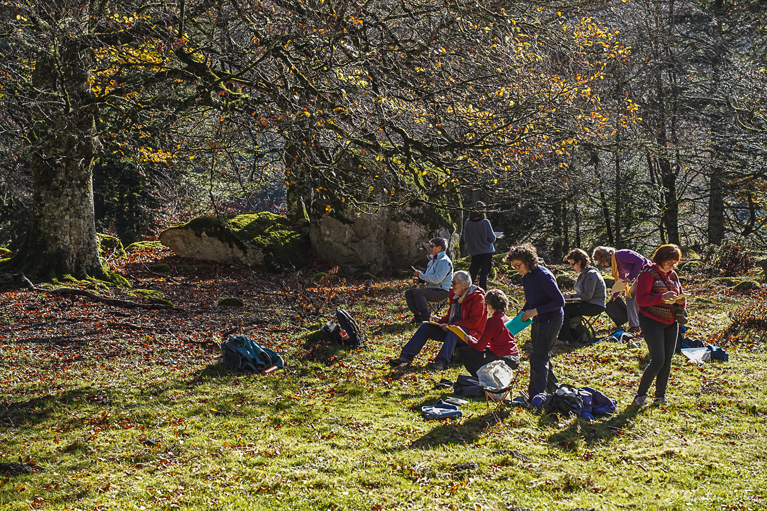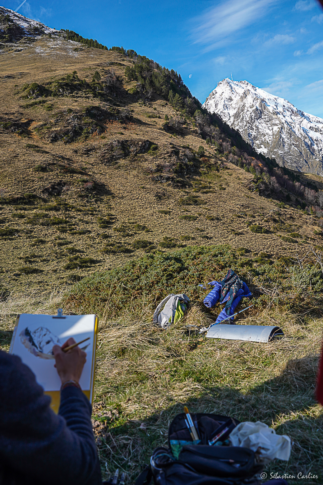 Nous avons passé 4 jours dans la Vallée de Campan à croquer et peindre montagnes, arbres, couleurs d’automne, ciels. Les carnets se sont remplis de mille histoires rencontrées en chemin ou contées par Sébastien.