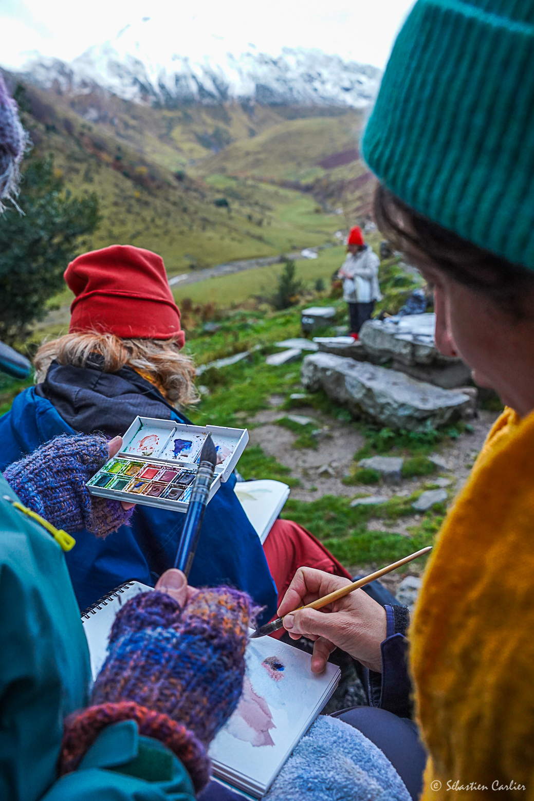 Un stage encadré au pinceau par Sophie Bataille et à l’accompagnement en montagne par Sébastien Carlier